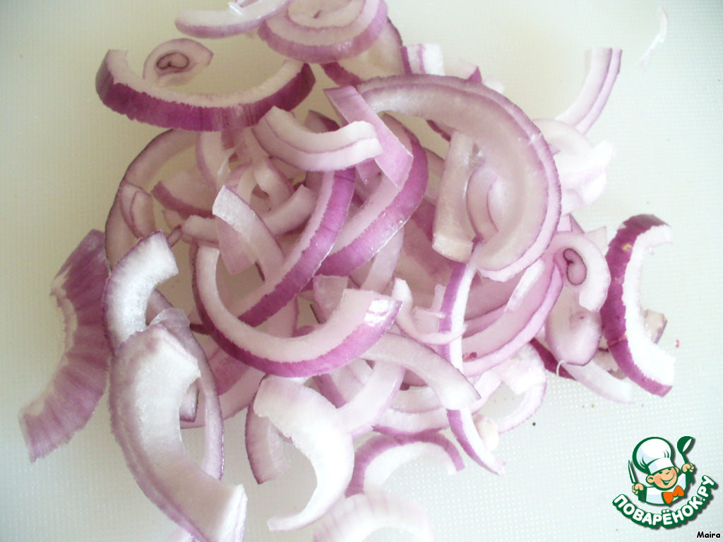 Лук нарезать полукольцами.