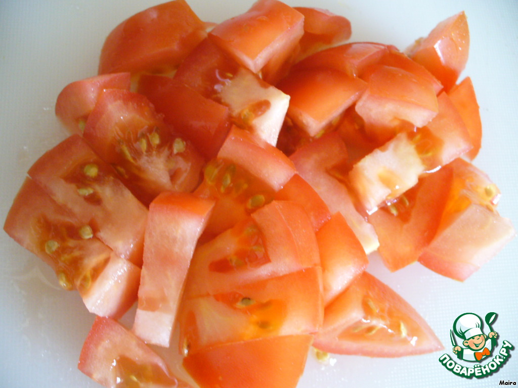 Помидор нарезать кубиками.