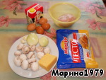 Подготовить все продукты, почистить лук, шампиньоны, чеснок.