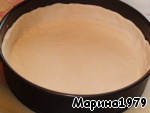 Духовку включить на разогрев до 180 градусов. Смазать маслом форму и выложить в нее тесто, формируя бортики. Форма у меня разъемная 26 см.