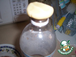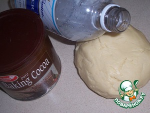 Дальше берём бутылку, горлышко макаем в какао, отрываем кусочек теста (не больше грецкого ореха) и скатываем шарик,