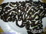 4 слой: огурцы нарезать тонкой соломкой
