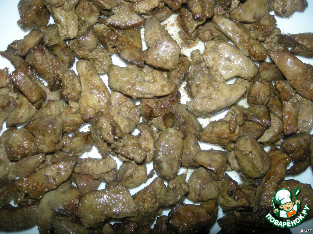Печень нарезать не очень мелко и обжарить на растительном масле.