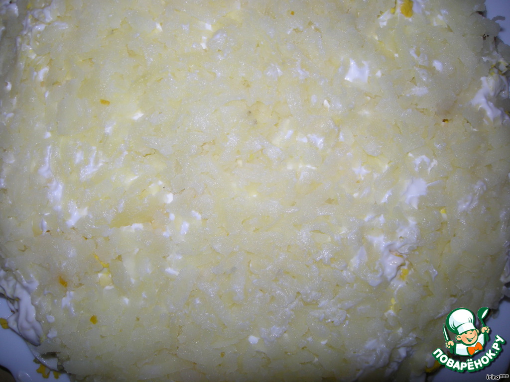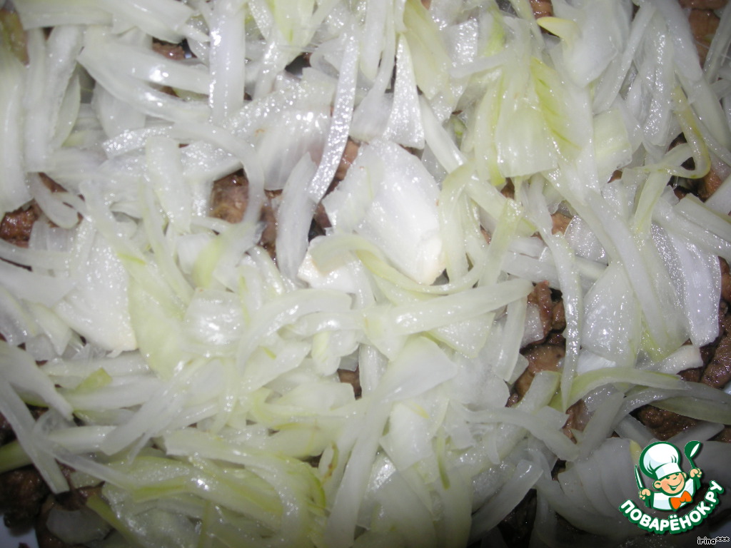Лук замариновать (0,5 литра воды, 4 ст.л. сахара, 1 ч.л. соли, 4 ч.л. уксуса - даeм настояться минут 30)