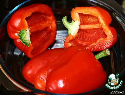 • Болгарский перец подготовить к использованию (вымыть, удалить семена, обсушить). Разрезать на половинки.