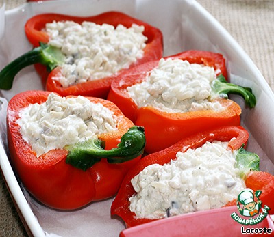 Рецепт «Перец с рисом, куриным филе и творожно-сливочным сыром»: