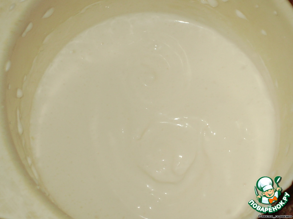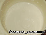 Пока печется тесто, смешиваем ингредиенты для крема и взбиваем до состояния взбитых белков