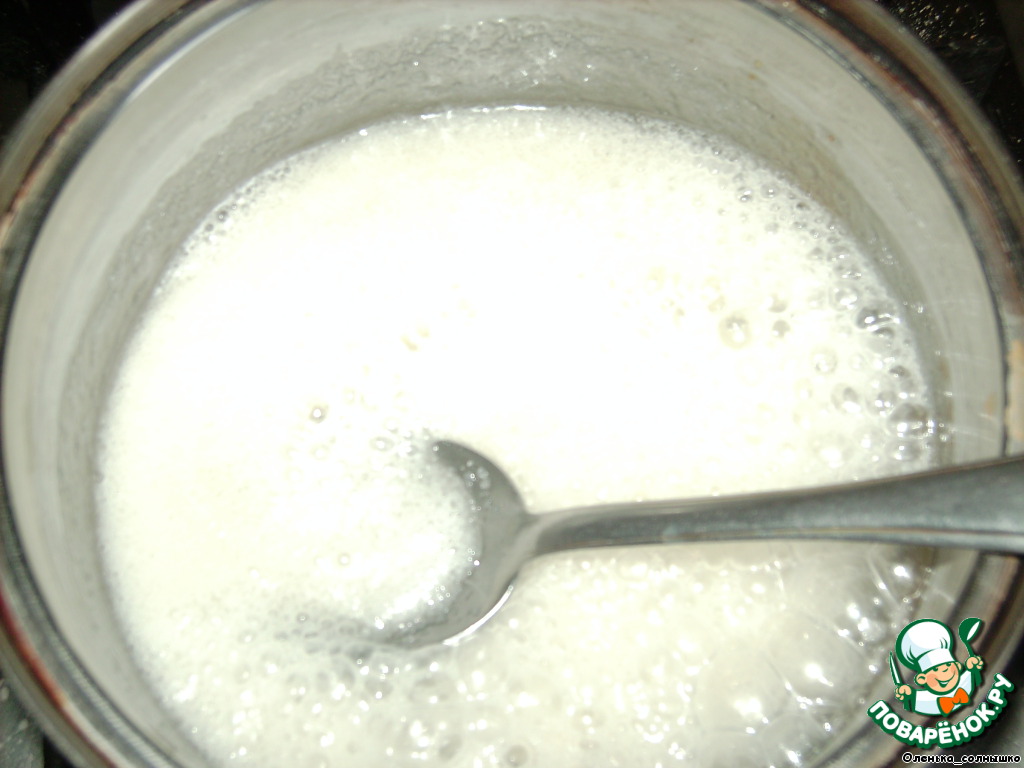 Приступаем к глазури: сахар заливаем молоком, если у вас тесто белое, то добавляем 2 ст. л. какао, ставим на маленький огонь и варим, помешивая, до полного растворения сахара и хорошего закипания