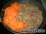 Когда сердца дадут сок добавить морковь, перемешать и, убавив огонь, потушить еще минут 5-10.