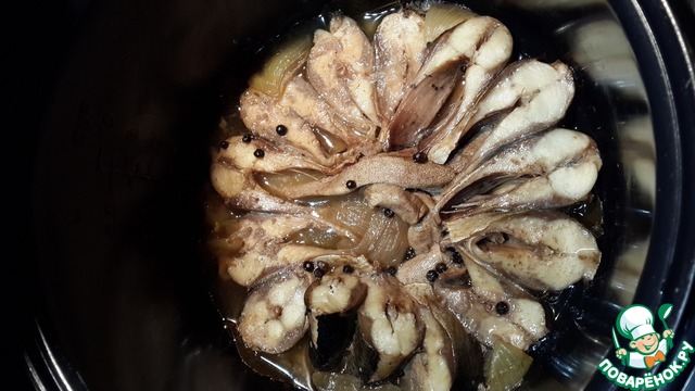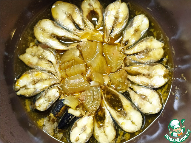 Уложить в широкую низкую кастрюлю брюшками в центр.