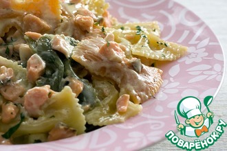 Макароны с лососем и шпинатом