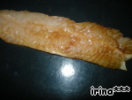 Филе рыбы разрезать вдоль на 2 или 3 полоски, посолить, поперчить.