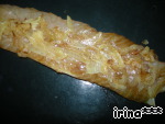 На полоски рыбы выложить обжаренный лук -