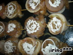 Одеть рыбу на деревянные шпажки.