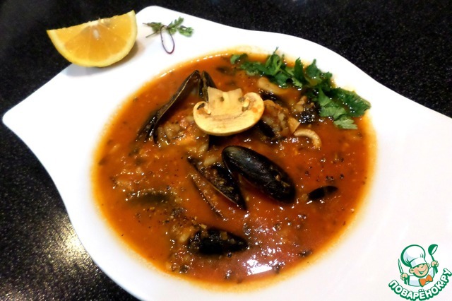 Суп я этот очень люблю вот по каким причинам: он красный, ароматный, в нем присутствуют мидии, которые я страсть как люблю. Да и вообще, он оч позитивный.