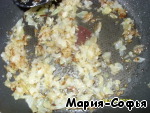Покрошенный лук обжарить на растительном масле.