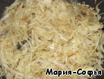 Обжарить капусту с луком до готовности.