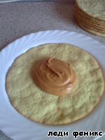 Для крема взбиваем сгущенку с мягким маслом. И начинаем промазывать наши коржи.