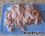 Тонко режем куриное филе и обжариваем до готовности (очень быстро жарится, не отойти от плиты)