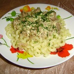 Меззанелли (вид макаронных изделий) с куриной печенкой в нежном соусе. Источник - из книги Homestyle Pasta + Катя-katerinaSur (kuking. net), спасибо.