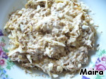 Тунец размять вилкой.