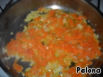 В отдельной кастрюле (я жарила в сковороде, но лучше в кастрюле) на растительном масле слегка обжарить мелко нарезанные лук и морковь (морковь натереть на терке).
