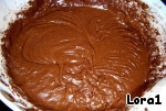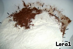 4. Муку смешать с разрыхлителем и какао, просеять и смешать с остальной смесью -