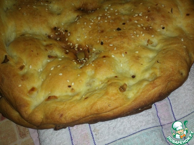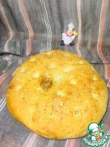 Фокачча получилась изумительная, с легким ароматом чеснока и очень хрустящей корочкой. Количество чеснока регулируйте в соответствии со своим вкусом. Угощайтесь на здоровье! Рецепт Карины.
