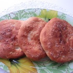 Разделить подошедшее тесто на 4 части и сформировать небольшие лепешки.