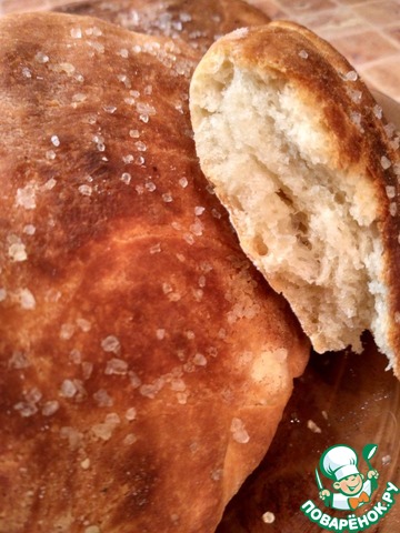 Смазать каждую фокаччу отцеженным от чеснока маслом и посыпать крупной морской солью. -