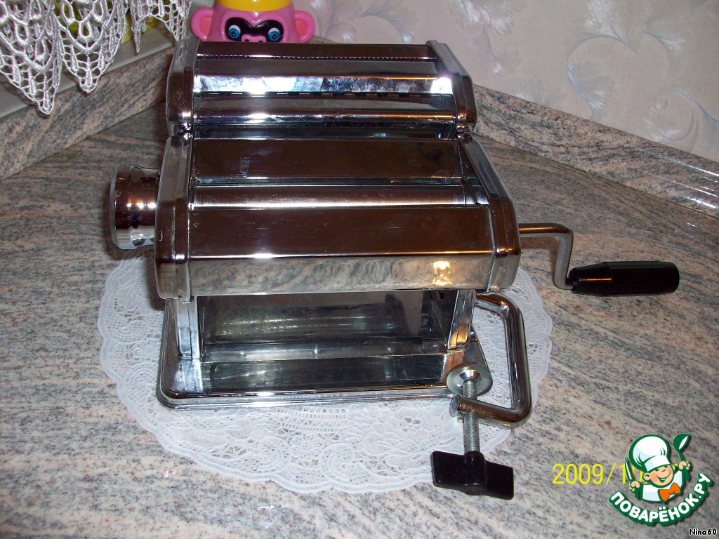 Это лапшерезка, с её помощью я делаю такое тонкое, ровно раскатанное тесто.