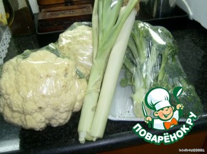 Цветную капусту и брокколи разделить на отдельные соцветия и вымыть. В широкую кастрюлю влить воду, довести до кипения, подсолить и добавить чуть лимонного сока. Соцветия порциями бланшировать в кипящей воде около 5-7 минут,