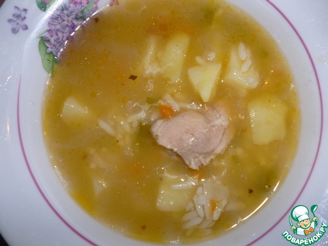 Мировая статистика показывает: популярность супов неумолимо падает. Специалисты по правильному питанию бьют тревогу. "Отказ современного человека от жидких горячих блюд представляет собой драматическое явление". Дабы напомнить человечеству о всей красоте и пользе обыкновенного рисового супчика, размещаю сей рецепт :)
