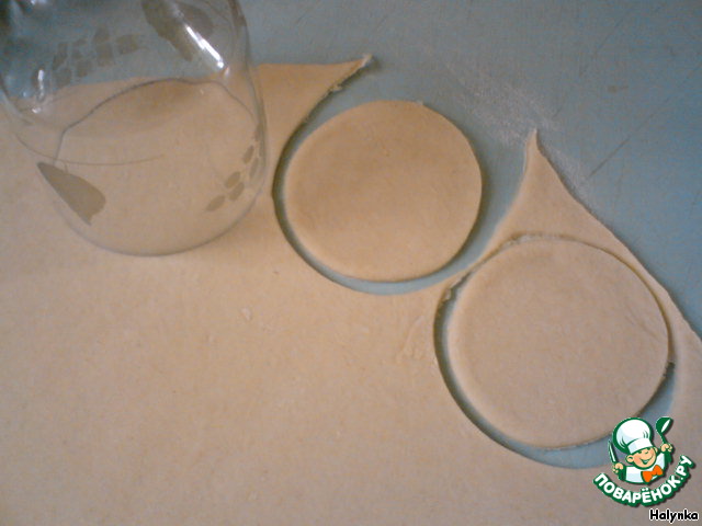 • Из молока (воды) и муки вымесить упругое тесто, раскатать его на столе толщиной в 3-5 мм и вырезать стаканом кружки для вареников.