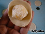 УРА! Доделала вареники . Не получилось так красиво и ровно завернуть края, как у вас . И фарш у меня получился с кислинкой (творог свежий не кислый). Надеюсь, после варки этот кисленький привкус пропадет.