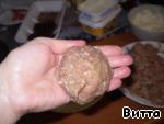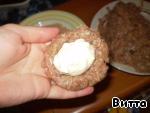 Делаем из фарша лепешечку. Кладем в серединку начинку