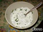 Пока обжариваются наши зразы, приготовим соус: смешаем сметану с зеленью