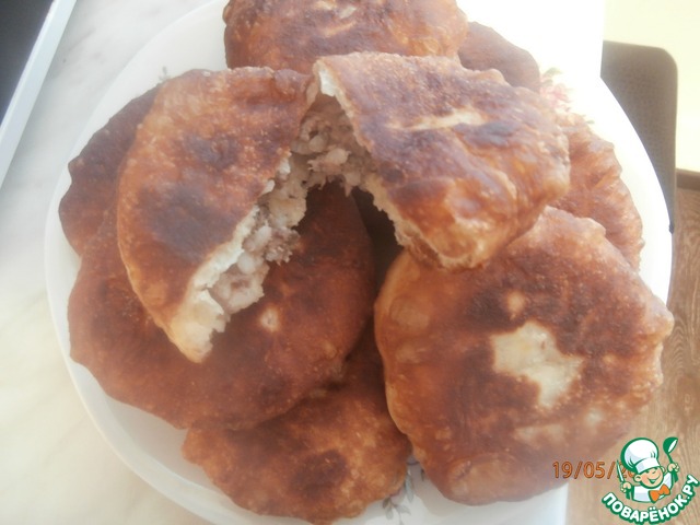 Делала лепешки, на середину клала фарш и собирала тесто в кучу, затем придавливала, чтобы получились круглые лепешки. Варила в подсолнечном масле.