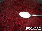Выключаем плиту, в свеклу добавляем чеснок и орехи, перемешиваем все и оставляем остывать, закрыв крышкой. Свекла должна пропитаться ароматом чеснока и орехов.