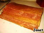 Каждую заготовку разрезать вдоль, получатся четыре коржа.
