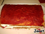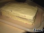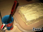 Верх и бока обмазать кремом. Нож опускаем в кипяток и выравниваем поверхность торта.