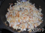 Остальной лук очищаем и измельчаем, жарим до золотистого цвета.