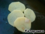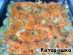 Укладываем слоями картофель + грибы + морковь + полукольцами порезанный лук.