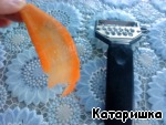 Морковь чистим и уже очищенную натереть через такое приспособление (овощечистку обыкновенную) или тонко нарезаем.