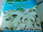 Грибы (шампиньоны) вытаскиваем из пакета, промываем (делать в общем не обязательно, но я так делаю всегда, чтобы отделить их друг от дружки). Можно взять свежие и тоненько их порезать.