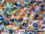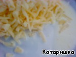 Натираем сыр и смешиваем со сливками, выкладываем на нашу запеканку.