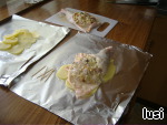 5. Хорошо смазываем маслом или сметаной, сворачиваем фольгу и отправляем в горячую духовку на 40 минут.