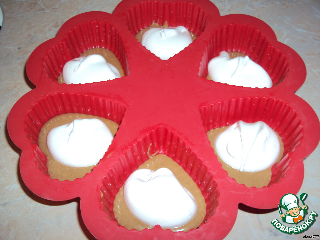 Формочки для маффинов или кексиков смазать растительным маслом. В каждую формочку влить по ложке тёмного теста.