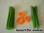 Хотела Вам показать украшение из зеленого лука и моркови, может, кому-то пригодится. Порежем лук длинной 8 см, из моркови вырежем колечки.