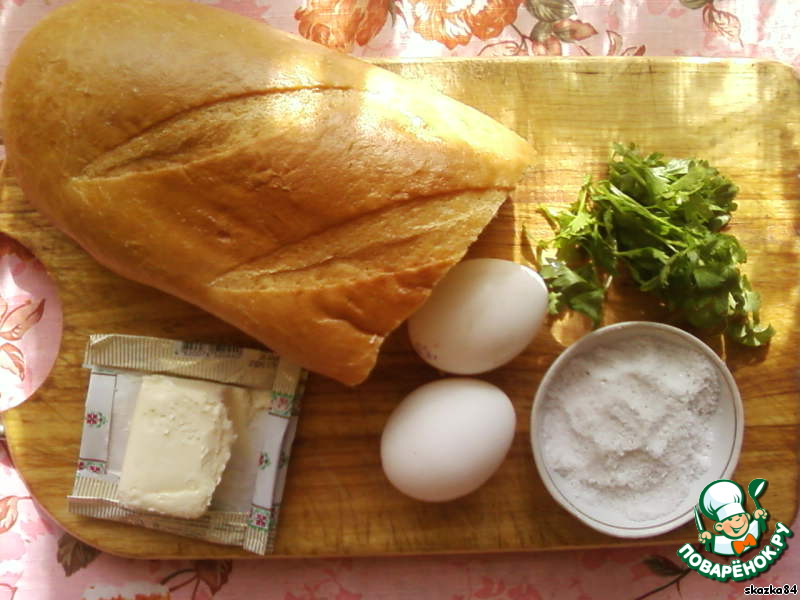 Батон (желательно белый), яйца, соль, зелень (укроп, петрушка)